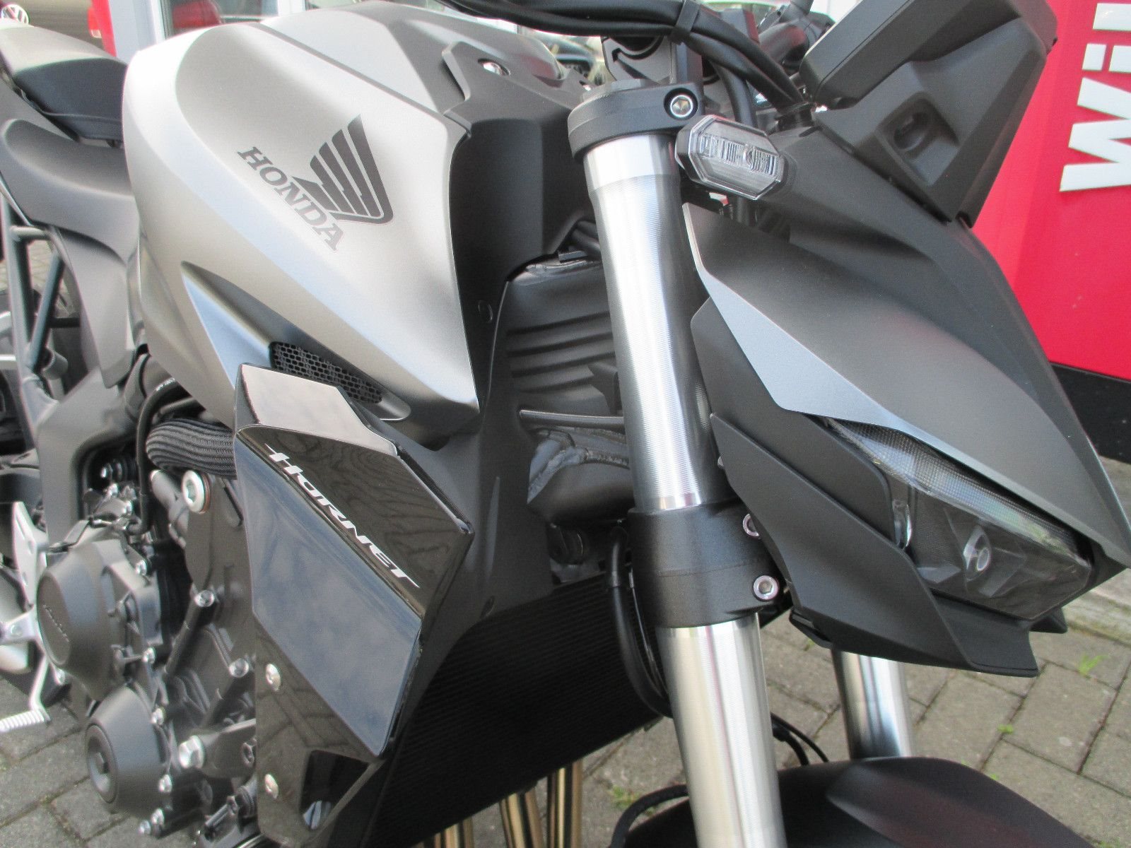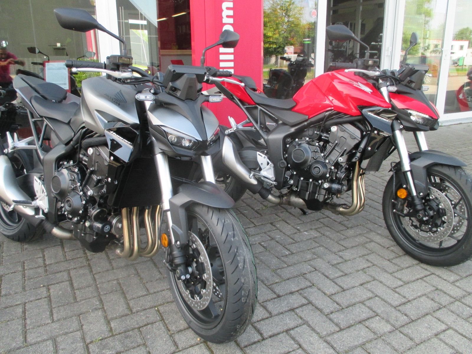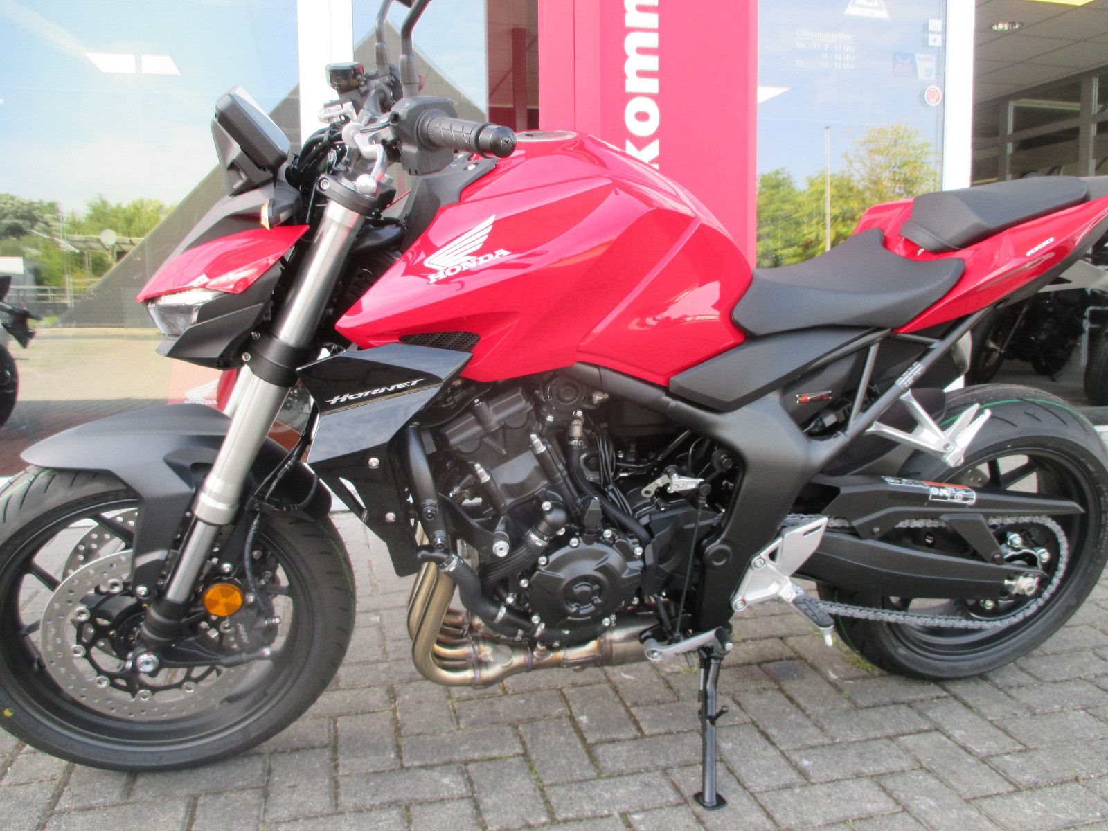 Die neue CB1000 Hornet mit ihrem Vierzylindermotor ist ein erstklassiges Naked Bike, das den Asphalt zum Glühen bringt. Throttle By Wire sorgt für präzise Kontrolle, während das Fahrwerk mit der einstellbaren SHOWA 41mm SFF-BP Upside-Down-Gabel und dem Pro-Link-Federbein ausgestattet ist. Die unverfälschte, aggressive Streetfighter-Attitüde wird durch einen markanten LED-Doppelscheinwerfer unterstrichen. Das 5-Zoll TFT-Farbdisplay und die Honda RoadSync-Konnektivität sorgen für die nötigen Informationen. Kann es losgehen?