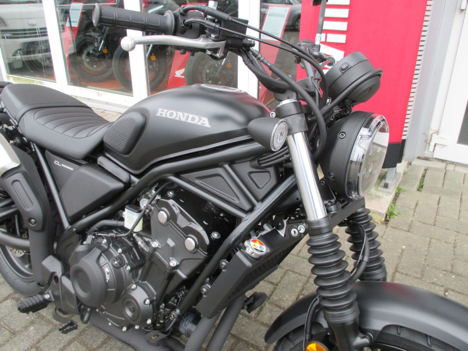 -Aufsitzen und losfahren Die CL500 wird mit allen Herausforderungen fertig, seien es unbefestigte Wege, gepflasterte Gassen oder Wochenendtouren. Die längeren Federwege schlucken Schlaglöcher und Fahrbahnunebenheiten und die tief profilierten Reifen vermitteln ein sicheres Gefühlt bei jedem Tempo. Die Sitzhöhe beträgt 790 mm, der Mittelteil ist schlank, sodass du den Boden leicht erreichen und bei niedriger Geschwindigkeit manövrieren kannst. Der Komfort wird durch ein neues Sitzmaterial und neu positionierte Fußrasten verbessert. Die Beinfreiheit ist großzügig bemessen (auf Wunsch ist eine höhere Sitzbank erhältlich) und der tief montierte Soziussitz erleichtert das Aufsteigen
