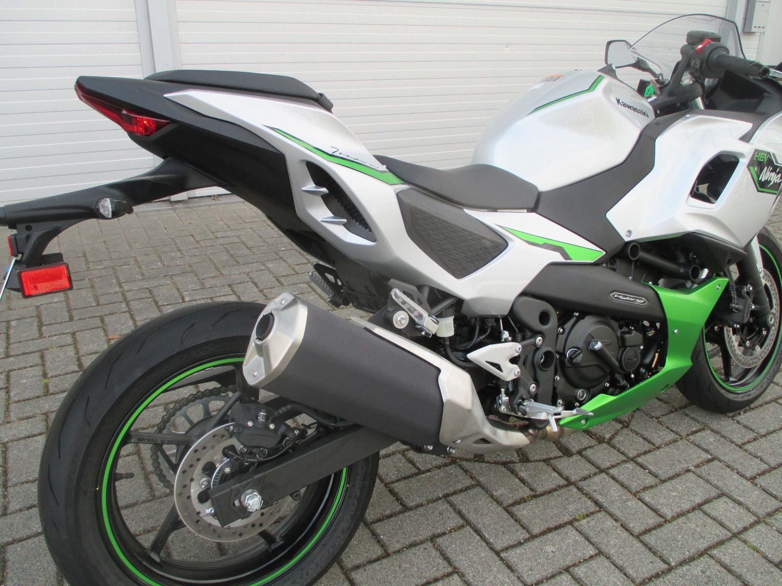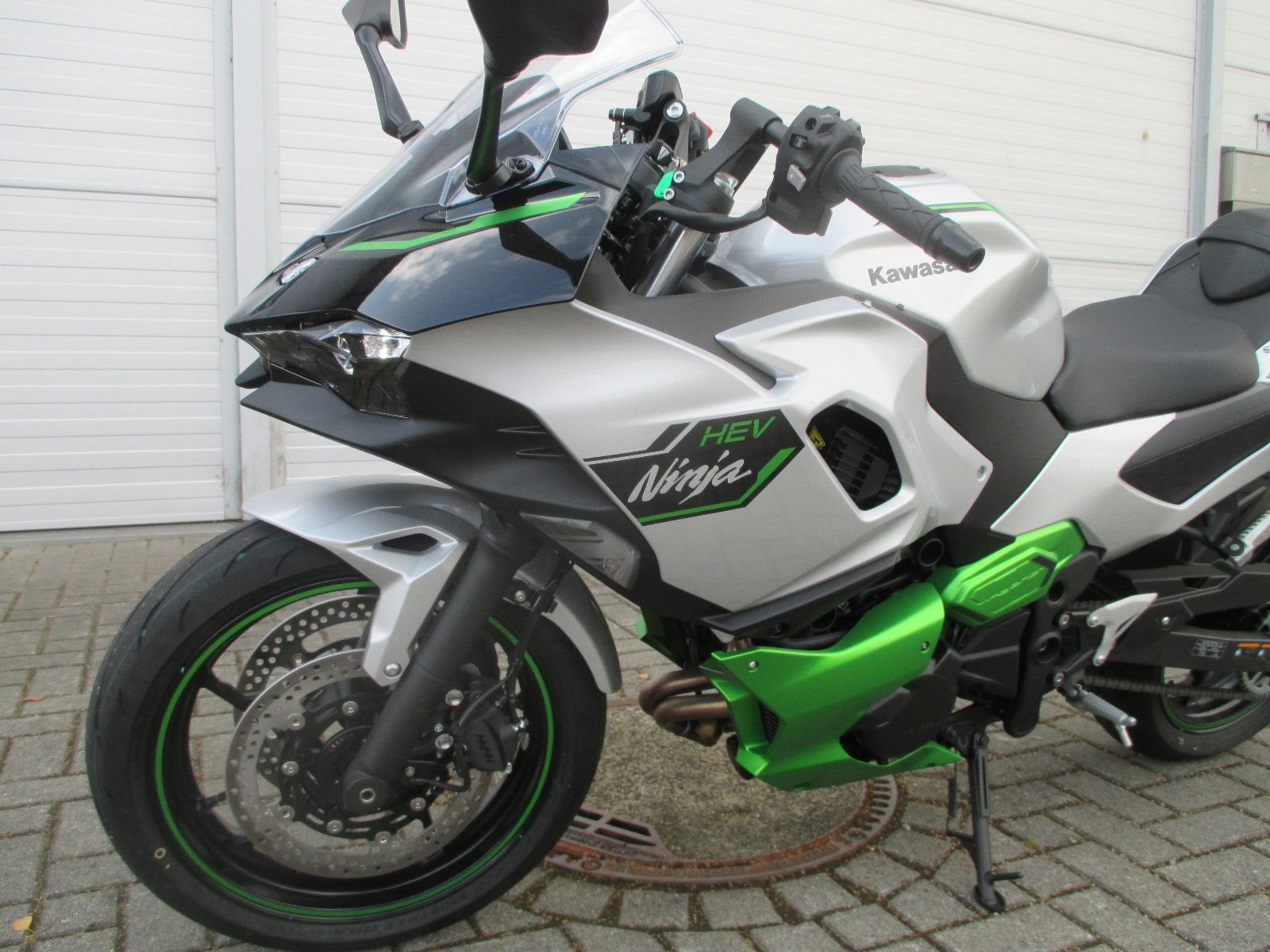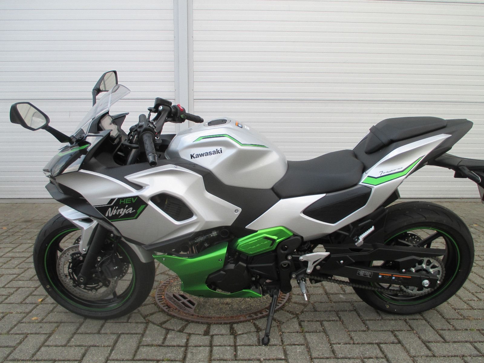 Das weltweit erste? Voll-Hybrid-Motorrad?? bietet dem Fahrer eine Reihe neuer Fahrerlebnisse: Ein Mittelklasse-Bike mit dem Beschleunigungsvermo?gen eines 1.000-cm-Sportmotorrads aus dem Stand (mit e-Boost) - der Verbrauch entspricht aber der 250-cm-Klasse. Dazu Schalten per Knopfdruck mit drei verschiedenen Fahr-Modi, außerdem viele neue Ideen und Mo?glichkeiten, die es zu entdecken gilt. Die Ninja 7 Hybrid ist ein Gamechanger und bietet ein vo?llig neues Fahrerlebnis.