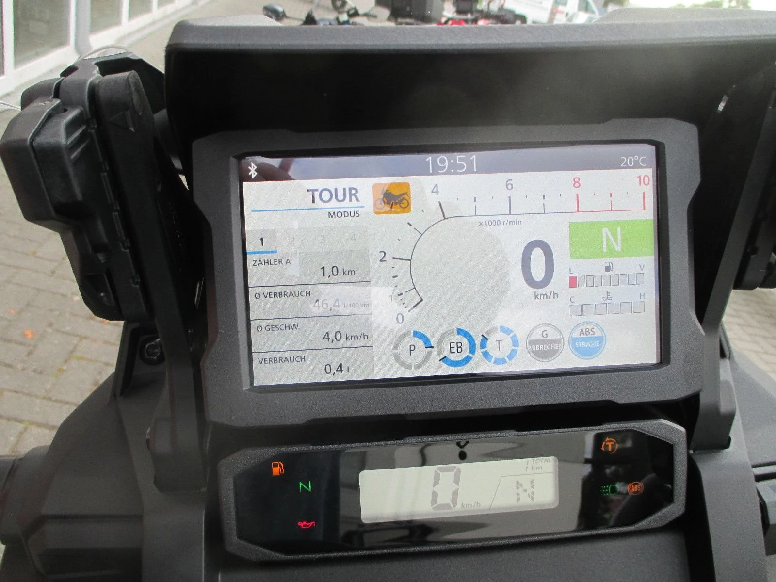 • Für jedes Abenteuer Die Africa Twin ist mit Elektronik ausgestattet, die das Fahren angenehmer und sicherer macht. Auf jeder Strecke. Die siebenstufige Honda-Drehmomentkontrolle (HSTC), die von einer 6-Achsen-IMU gesteuert wird, überwacht die Hinterradtraktion und sorgt für eine sanfte Fahrt auf der Straße oder im Gelände. Die dreistufige Wheelie-Control wirkt dem Abheben des Vorderrads in der gewünschte Stärke entgegen und das ABS mit Kurvenfunktion sorgt für eine sichere Bremssteuerung. Vier voreingestellte Fahrmodi, URBAN, TOUR, GRAVEL und OFF-ROAD, stehen bereit, aber im USER-Modus können Sie alle Parameter vollständig anpassen.